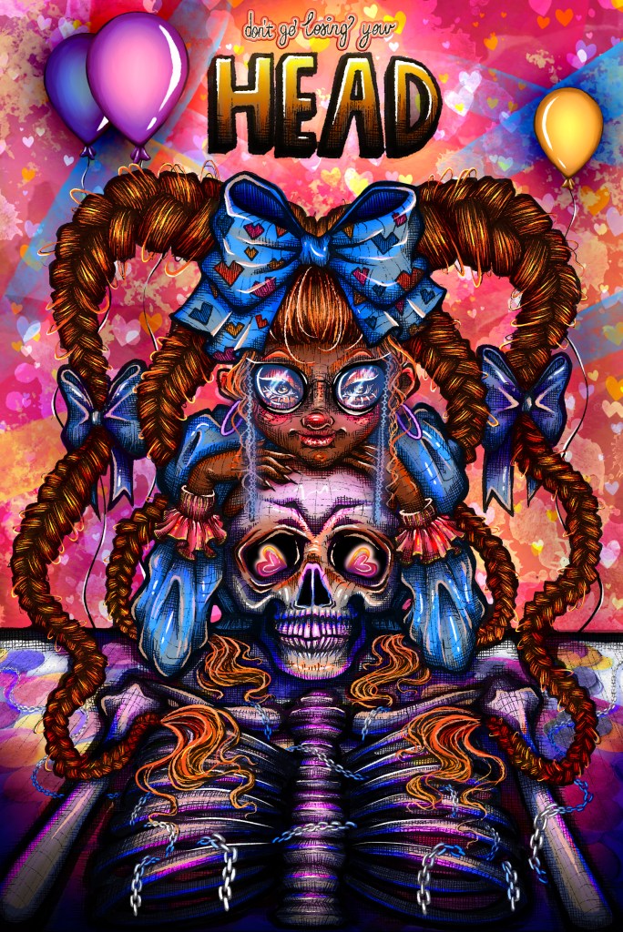 (watercolours, acrylic paints, paint pens, fine liner pens and digital editing)