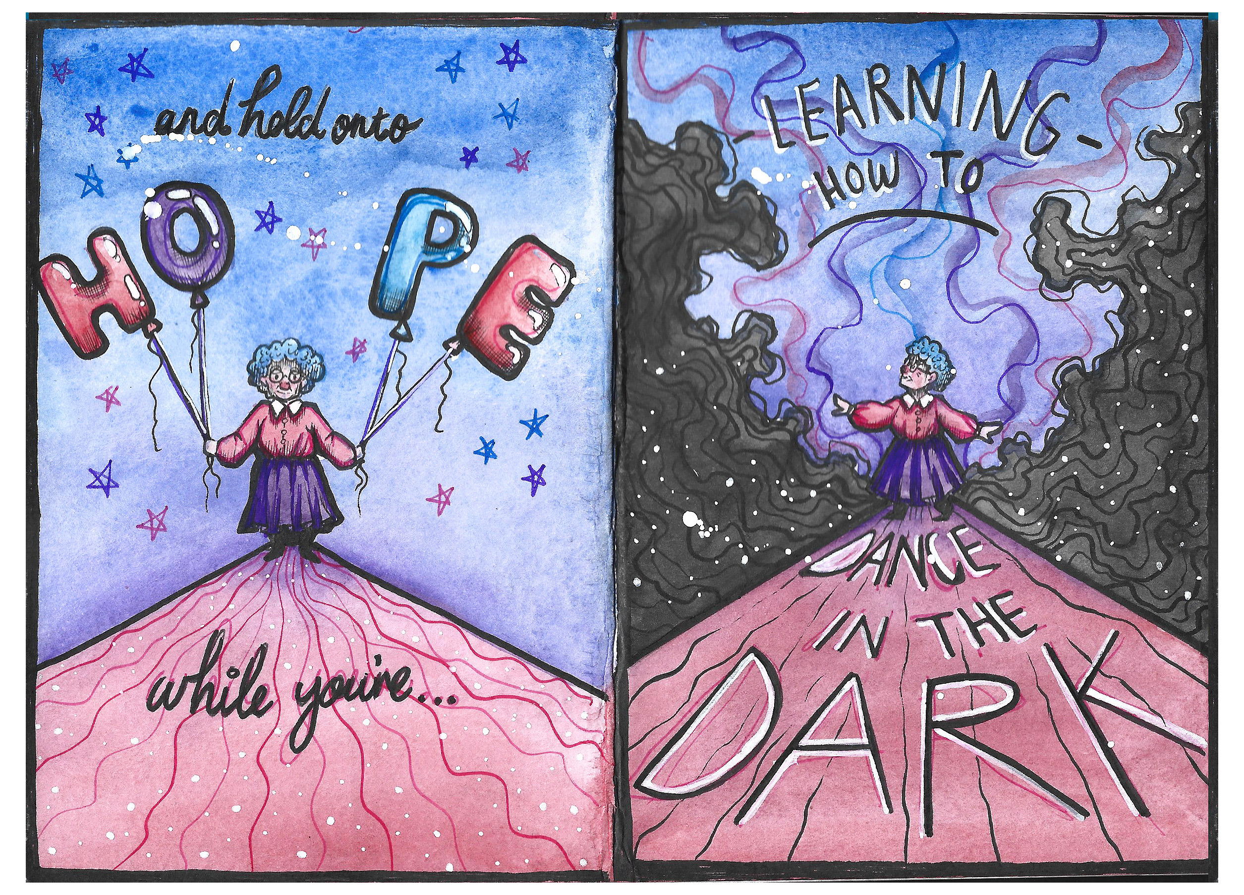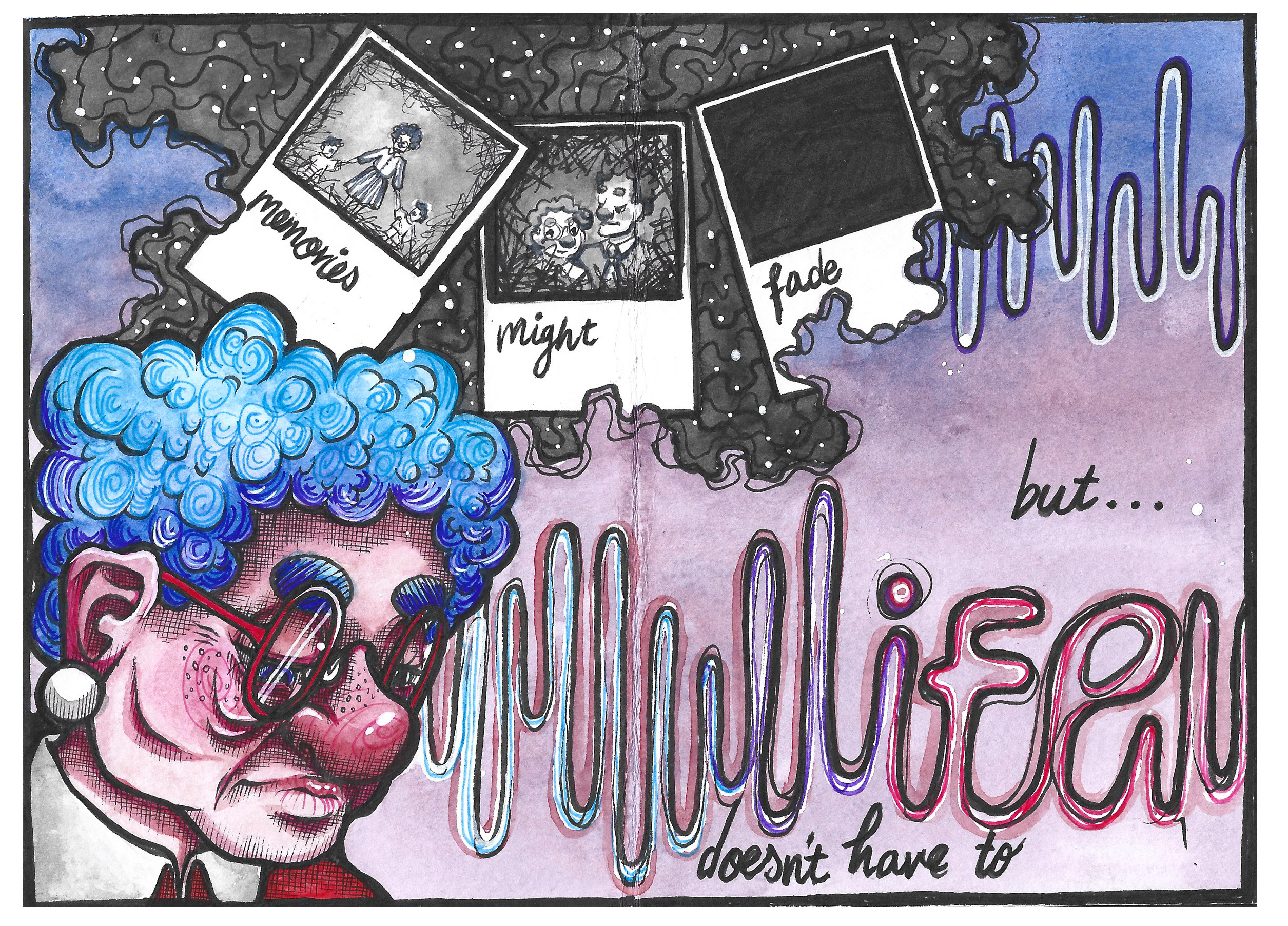 I was tasked with creating a fold-out zine for this project, focusing on one of three charities. For this, I focused on the relationship between art and dementia for a dementia charity. This was purely traditionally illustrated, using a mixture of watercolours and ink.